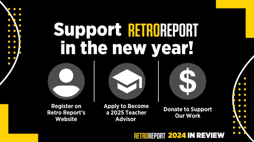 If you use Retro Report resources, please support us! Kindly consider a tax-deductible donation in support of our work. Will you help us amplify our efforts? Spread the word about Retro Report on platforms like Bluesky, Facebook, X and Instagram. Thanks to generous donors, every dollar you give will be matched, up to $50,000.
