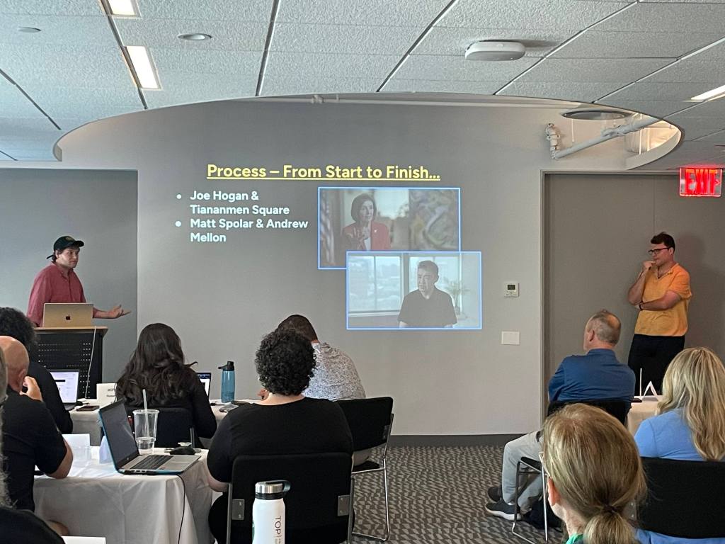 Producers Joseph Hogan and Matt Spolar discussed their roles and personal experiences working at Retro Report in a Q&A session. Hogan outlined Retro Reportโs production process and discussed his current work, a short doc on Tiananmen Square that will be published this fall. Spolar shared a clip of one of his new projects.